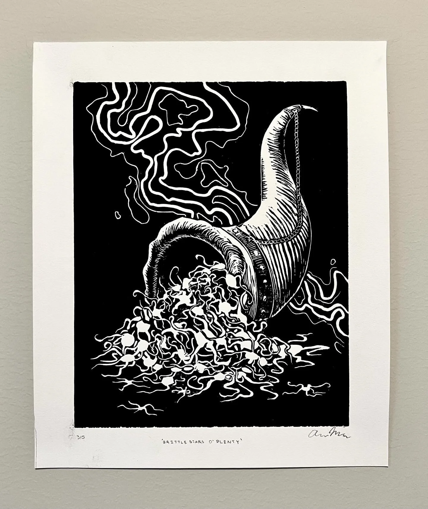 self portrait as persephone (18” x 24” linocut, Variable edition of 4)
